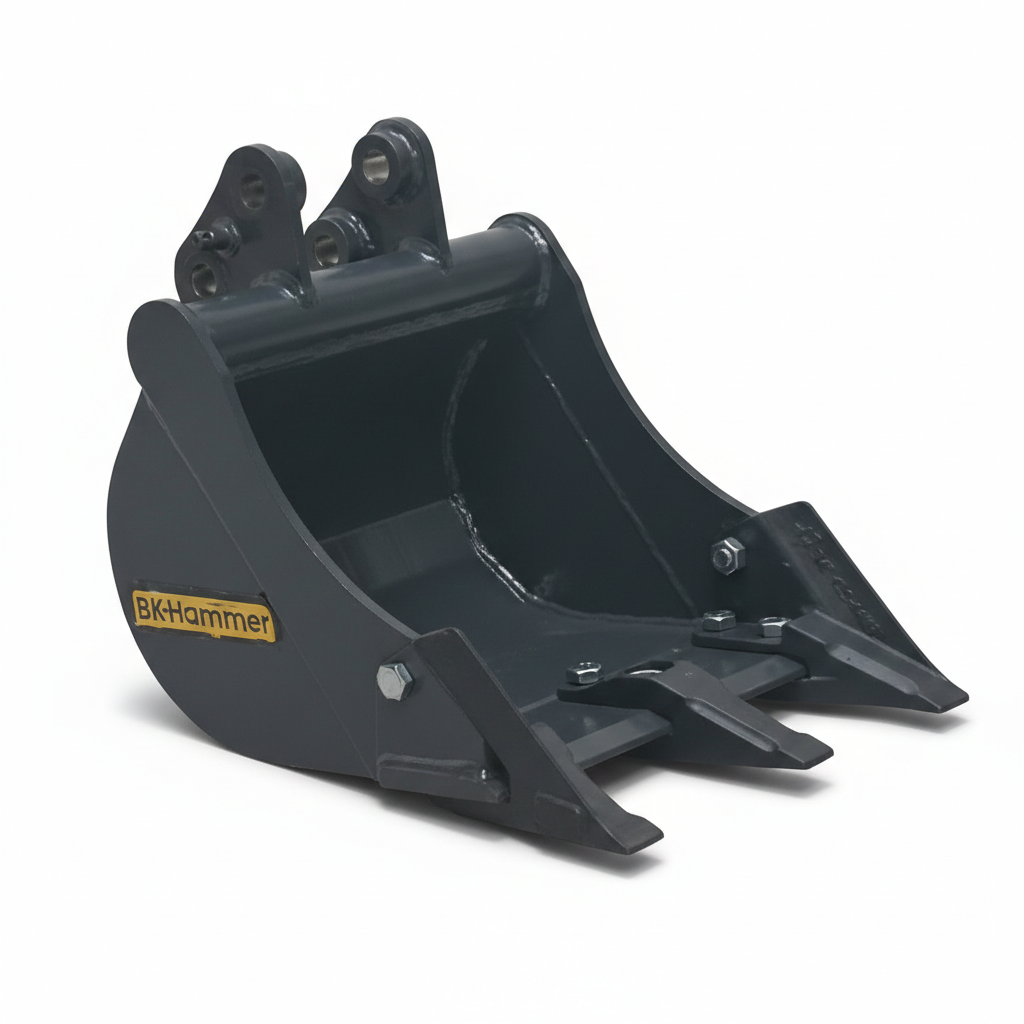 Wybierając tę łyżkę, inwestujesz w produkt zoptymalizowany pod kątem wytrzymałości (Hardox®) i idealnie dopasowany pod kątem mocowania (25/95/90) do Twojej minikoparki JCB.